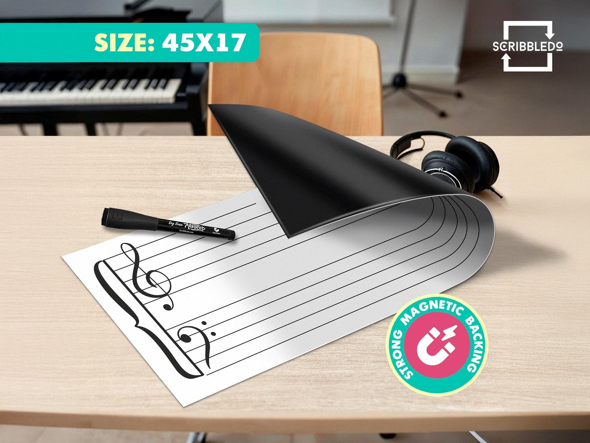 Teach music with ease using the Scribbledo 45"x17" Dry Erase Magnetic Music Staff Board. Designed for classrooms and music lessons, this oversized magnetic staff makes it simple to demonstrate notes, rhythm, and melody to students.