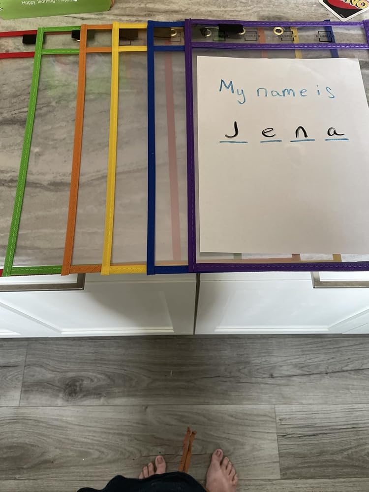 🎯 OVERSIZED POCKETS: Our plastic dry erase pockets measure 10 x 14 inches, which makes them perfect for storing the most size of papers or student activity sheets, and they come in 6 colors, which are red, green, yellow, orange, purple, and blue.