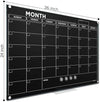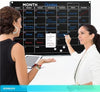 Black 24”x36” Magnetic Glass Whiteboard Undated Monthly Calendar Planner
