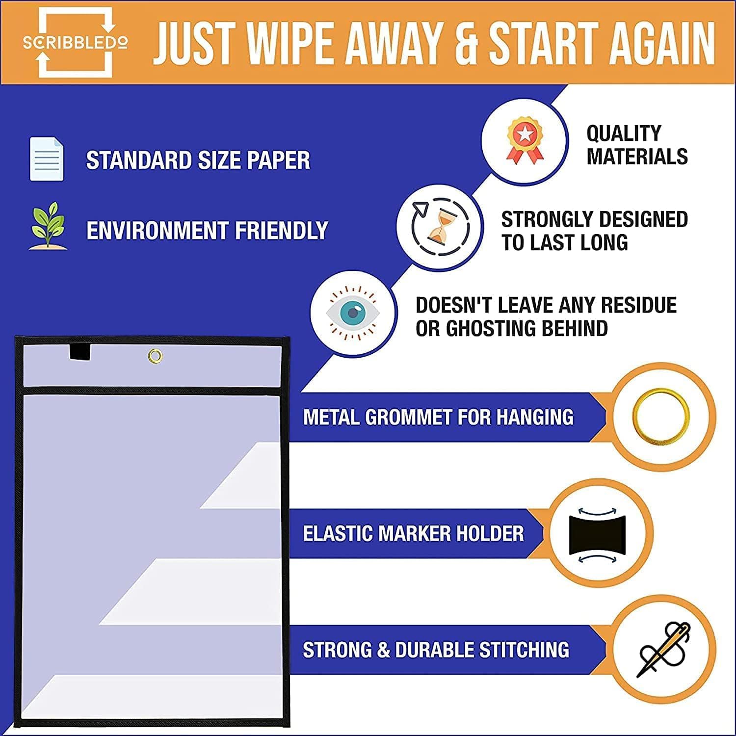 Dry Erase Compatible – Reusable surface works with dry-erase markers for easy updates.