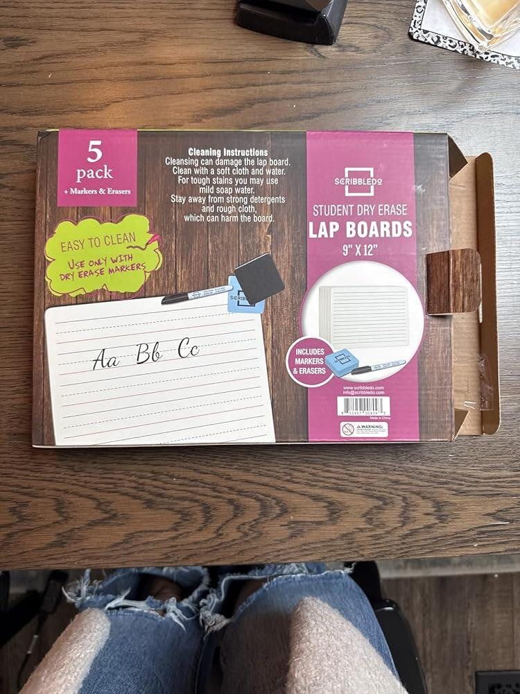 5 Pack 9x12 Inch Lined Dry Erase Boards with Accessories – Includes five reusable handheld dry erase boards with lines, plus matching markers and erasers for a complete set.