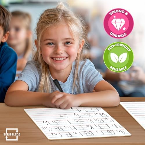 DOUBLE SIDED DRY ERASE BOARD - The mini whiteboard small dry erase board for kids is fade-proof ruled on one side and blank on the reverse. Use the reverse side of the kids dry erase board small for drawing white board for kids writing board. The individual dry erase board for kids makes a perfect kids drawing board, dry erase whiteboard with lines and a dry erase notebook. The ideal deal lined white boards for classroom.