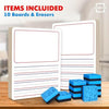 10 Pack Double Sided 9”x12” Story Lined Dry Erase Whiteboards + Erasers