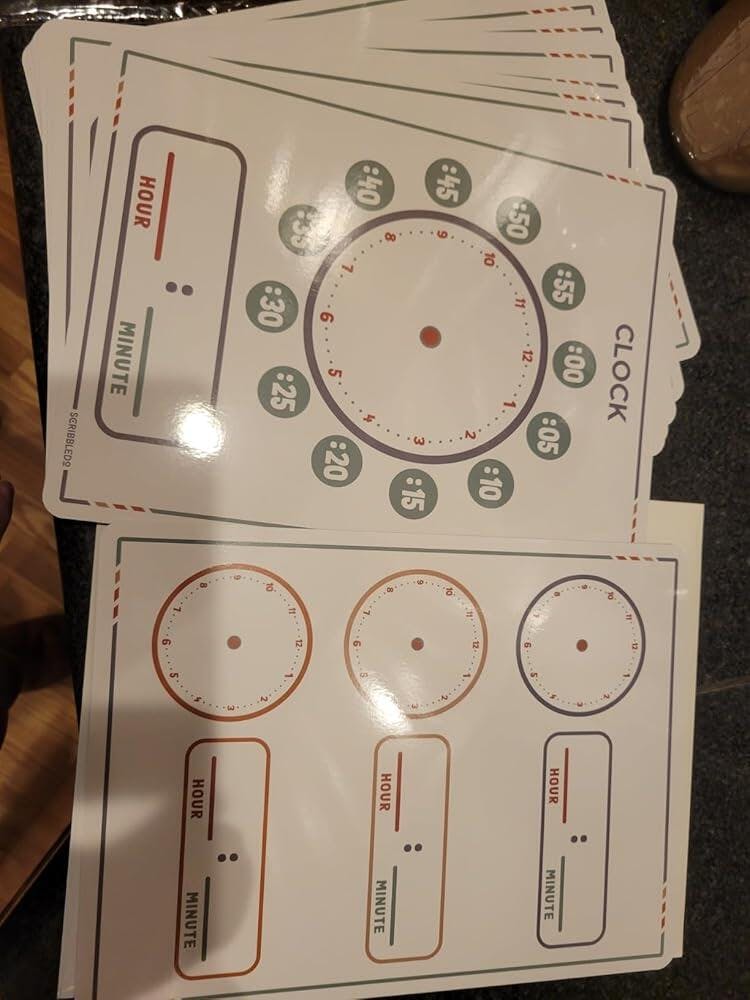 Classroom Tools: These sheets are perfect for various educational settings. From first grade classroom essentials to clock learning for kids 2nd grade, they fit seamlessly into any learning environment. Ideal as classroom manipulatives, homeschool supplies, or general kids learning clock supplies, these small dry erase sheets are an invaluable resource for teaching time-telling concepts.