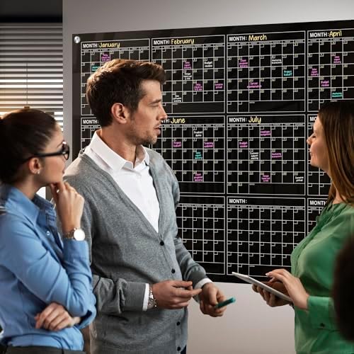 GIANT WALL CALENDAR: The huge blank white board calendar dry erase for wall contains large daily planning boxes that you can see from across the room. When using the calendar whiteboard there is no squinting, guessing, or leaving your desk to view what’s on the agenda. The wall calendar dry erase glass whiteboard makes it easy for your team, class and family to stay organized and to set goals. Using the dry erase calendar board for wall, you’ll find yourself planning like you never have before.